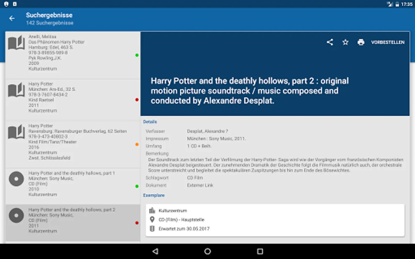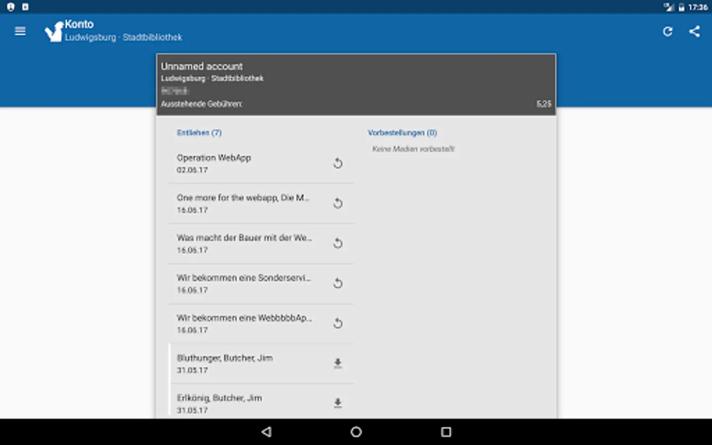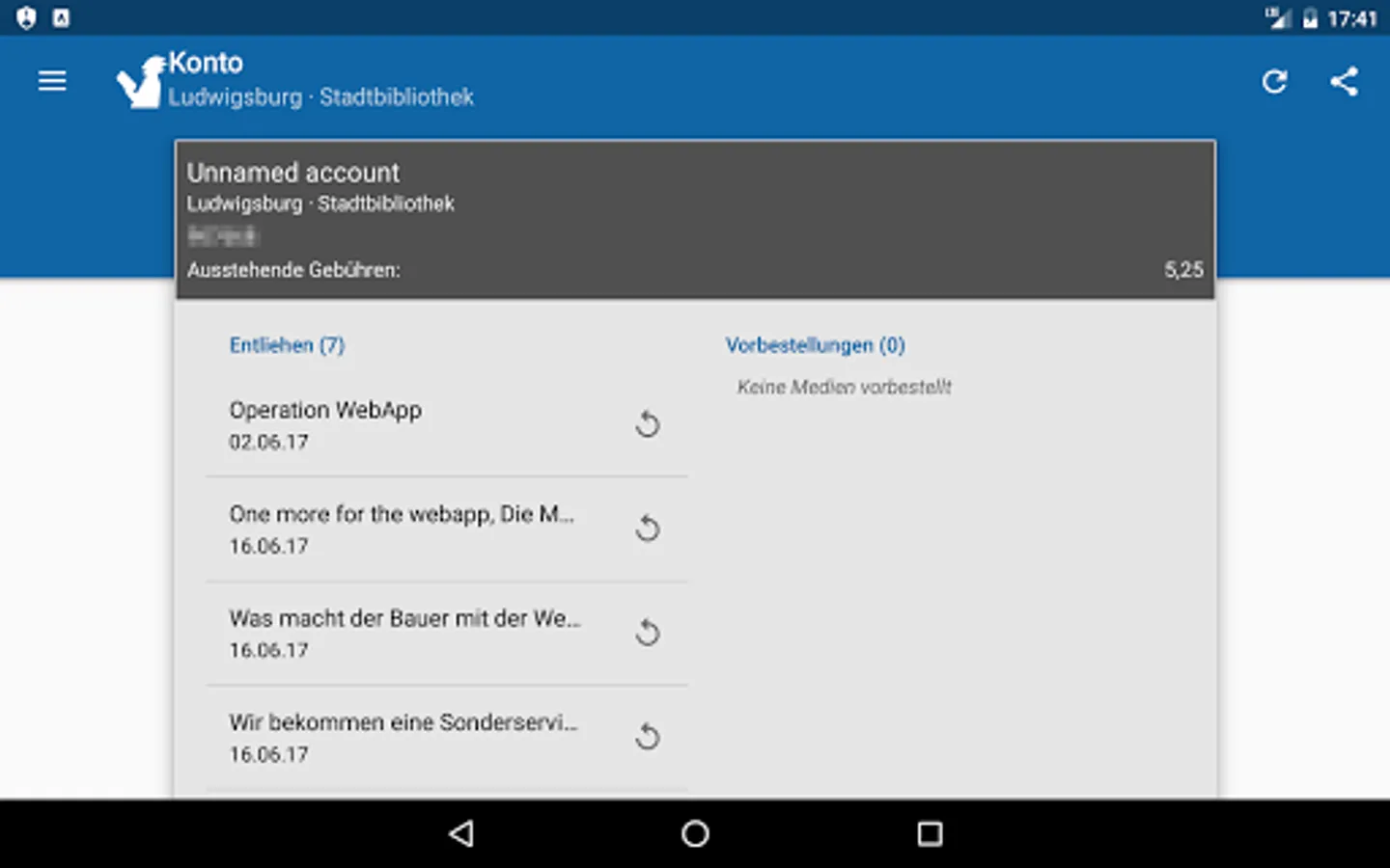 This Android app gives you easy access from the road to the catalog and the membership account of the municipal library Ludwigsburg.
