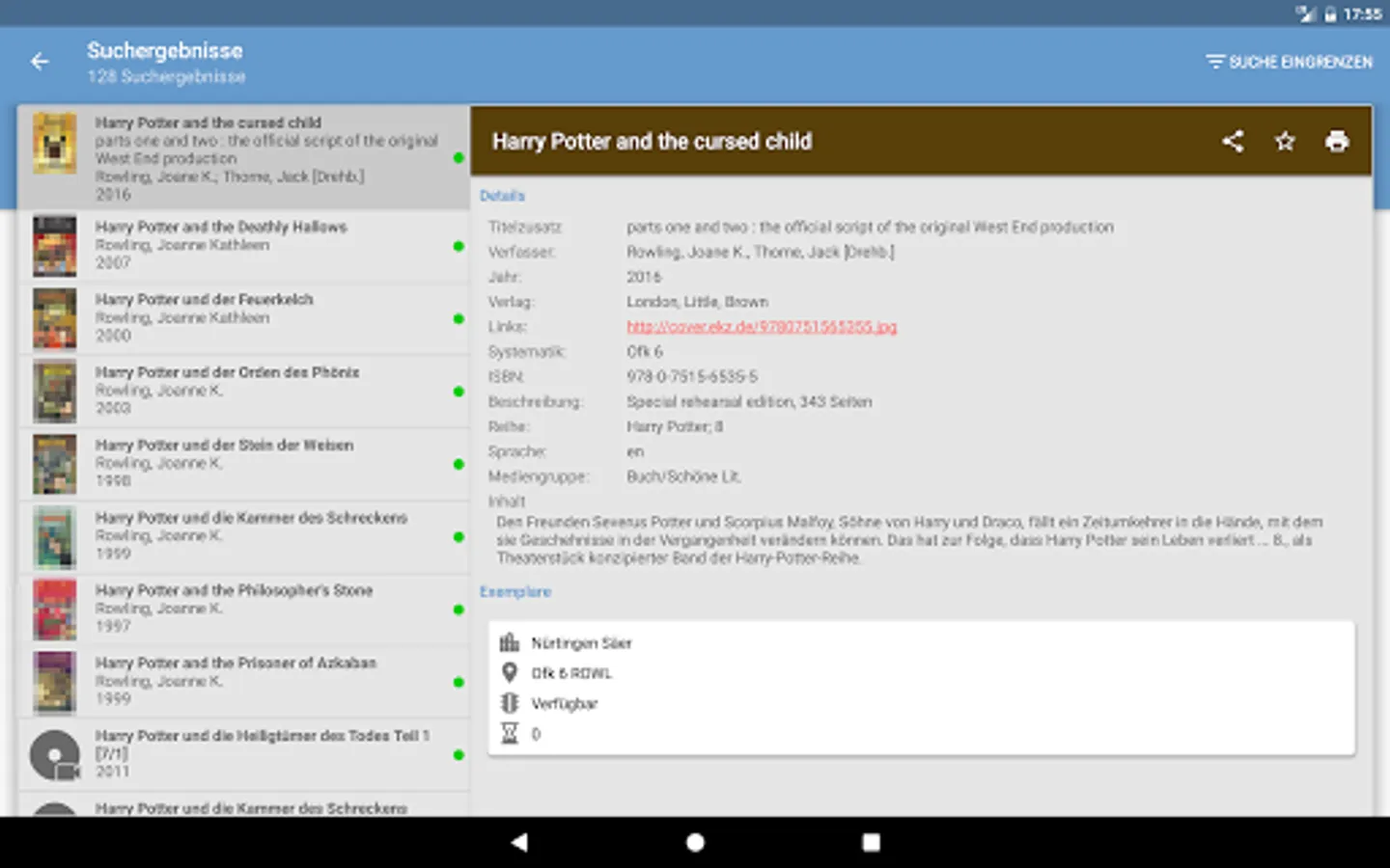 This Android app gives you easy access from the road to the catalog and the membership account of school libraries in the district of Esslingen.