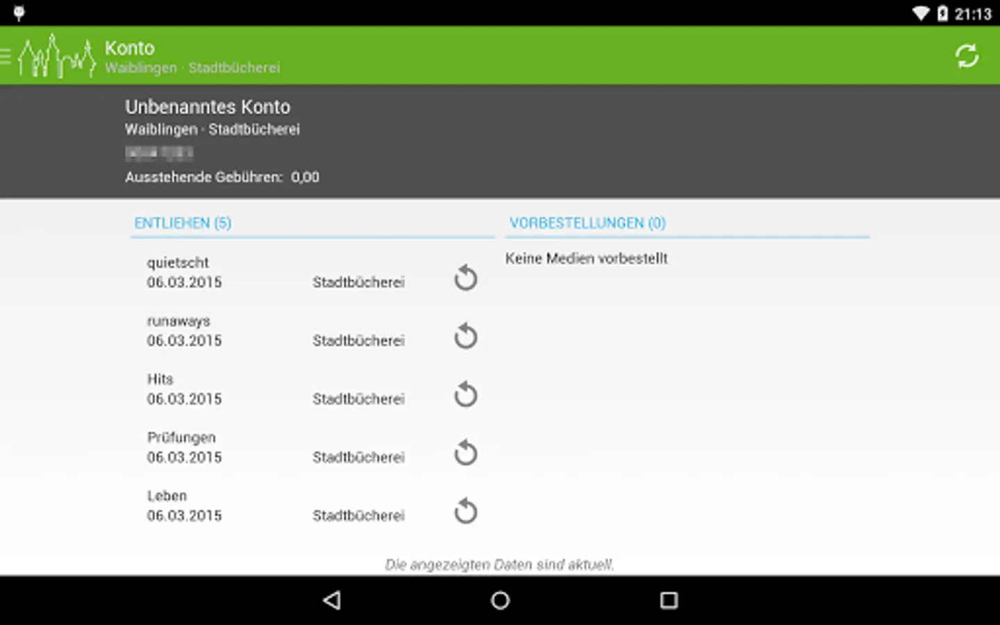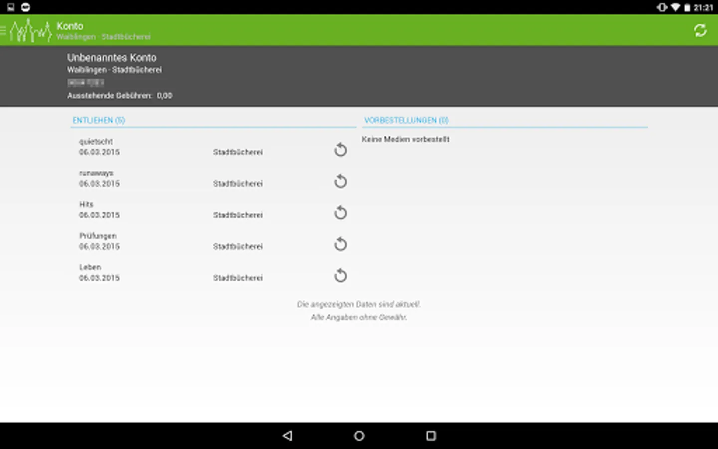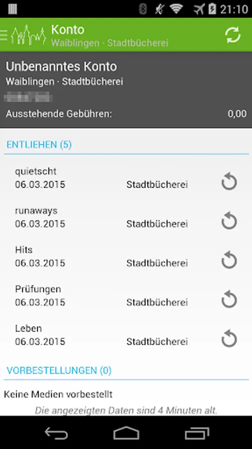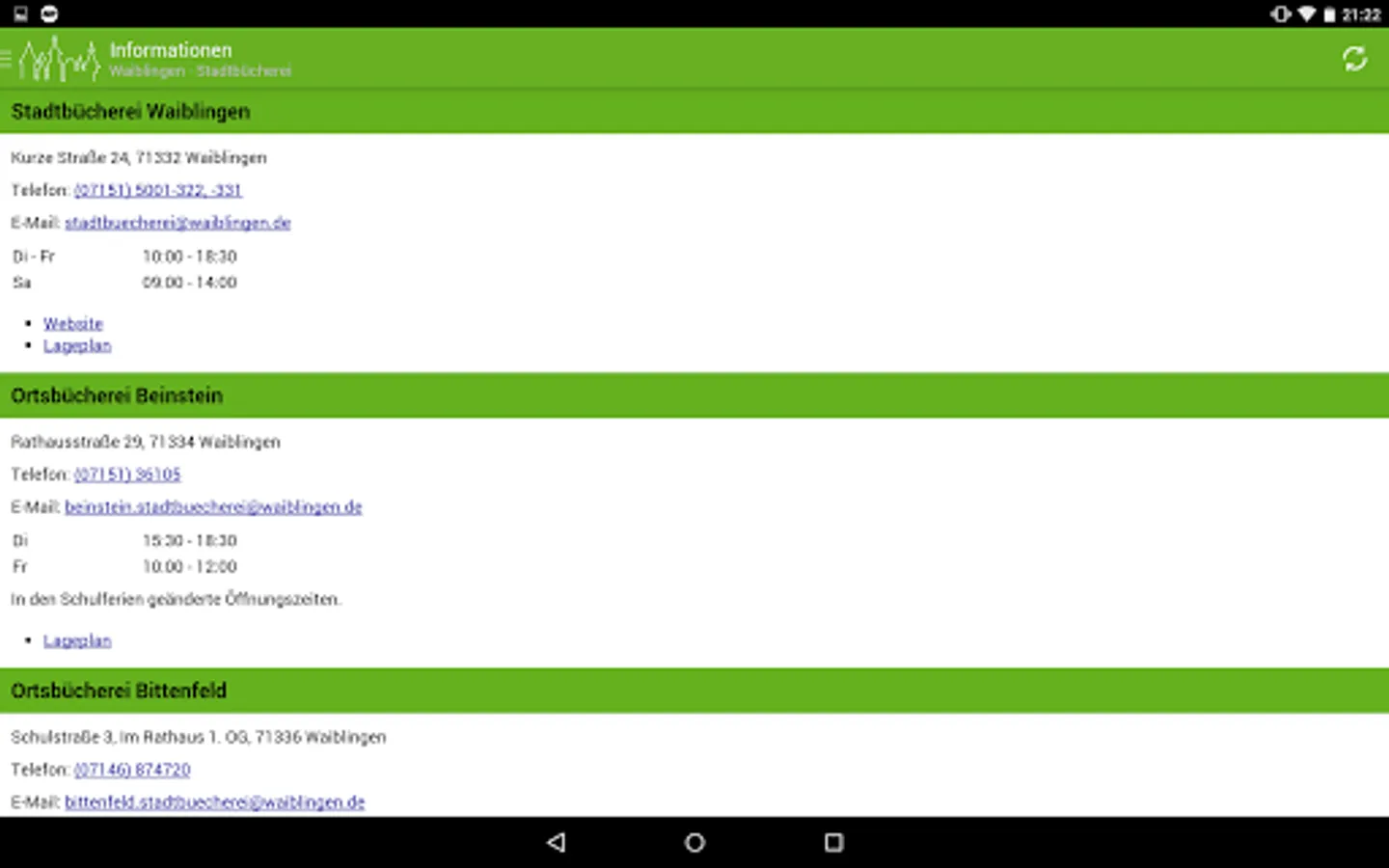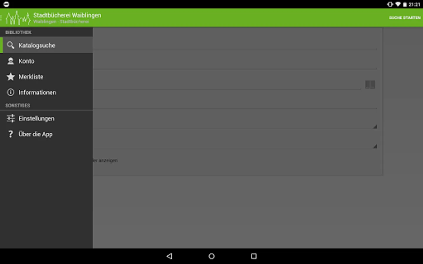 This Android app enables convenient access to the catalog and member account of the Waiblingen public library on the go.