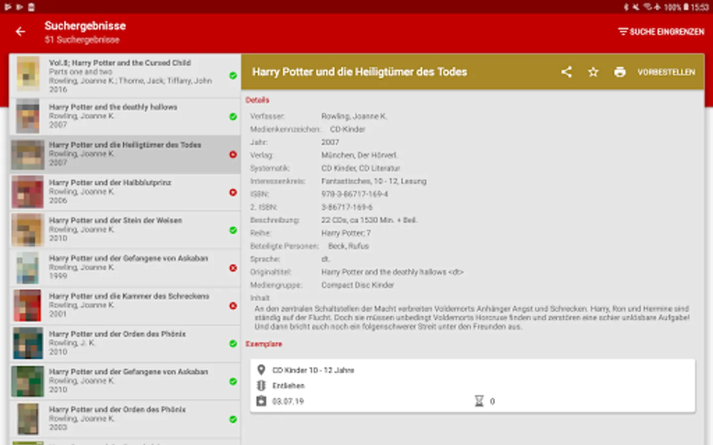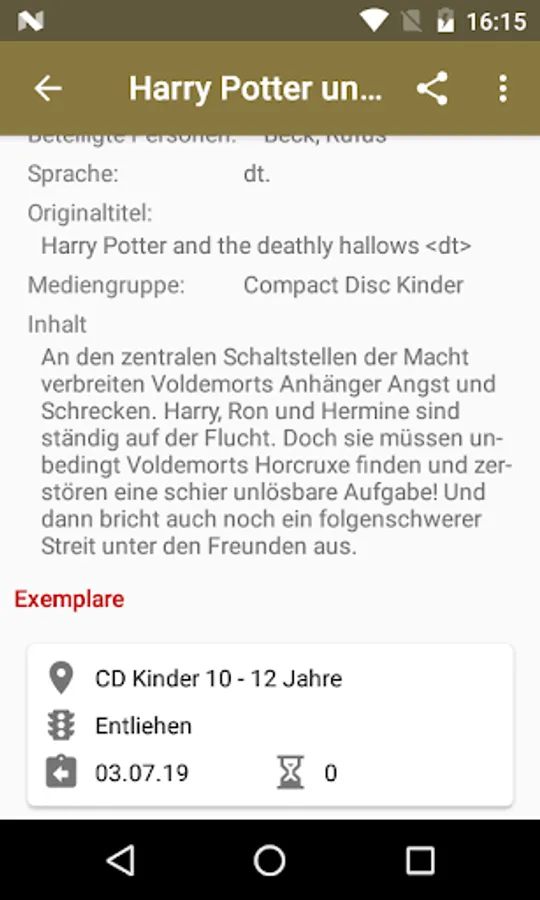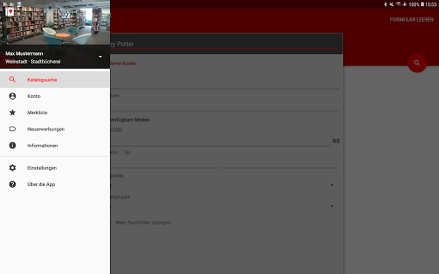 This Android app allows convenient access from the road to the catalog and the membership account of the city library Weinstadt.
