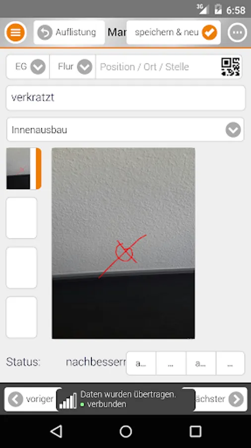 The companies from the construction industry work closely with a large number of partners. Information about the status and the quality of the work is continuously exchanged. Timely post-processing is often required. The process of site inspection, documentation of defects, communication and the subsequent control are laborious, time-consuming and error-prone. In particular, the transfer of handwritten defects into a digital form is labor-intensive and, thanks to our development, superfluous.
