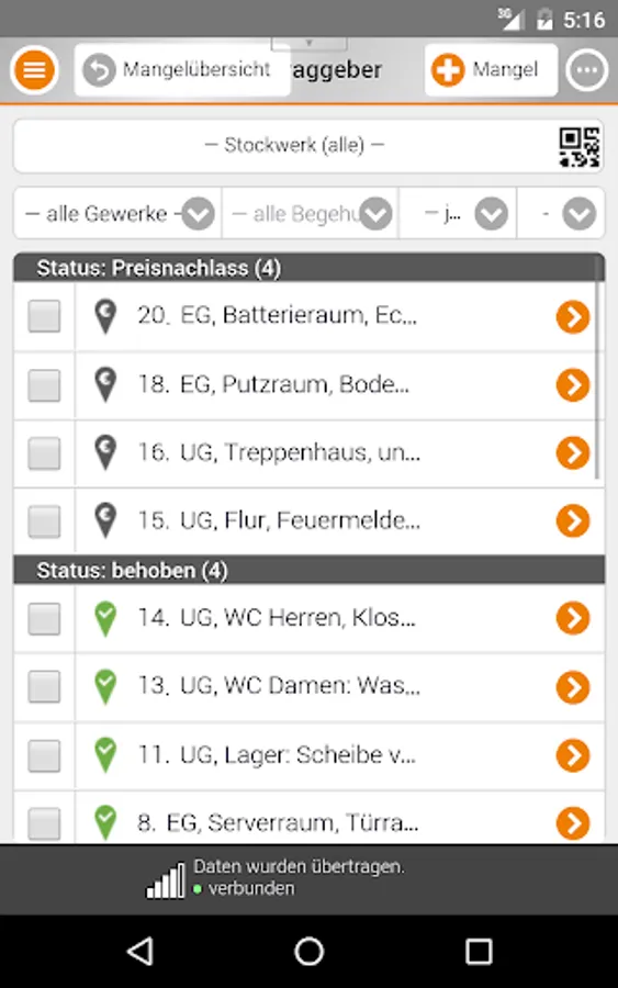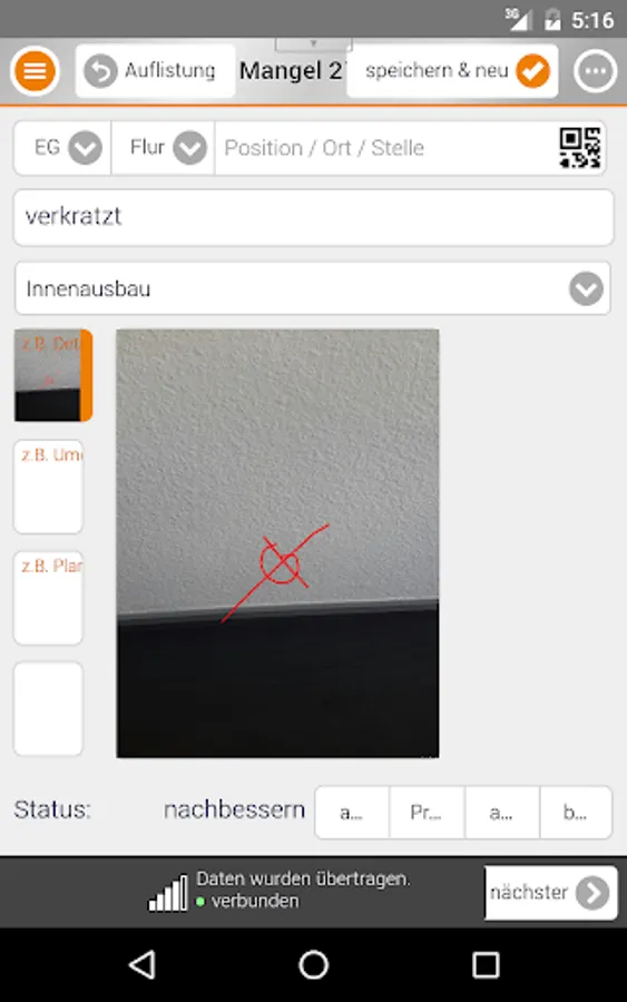 The mobile service construction defects offers targeted support for such problems. In this way, he can revolutionize the on-site documentation of construction works to be improved. Defects can be recorded effortlessly with the help of text modules. Object photographs supplemented with graphical freehand notes clearly illustrate the actual situation. In this way, the partner companies can quickly find and eliminate the relevant weak points independently. Typical applications for our construction defects service are: