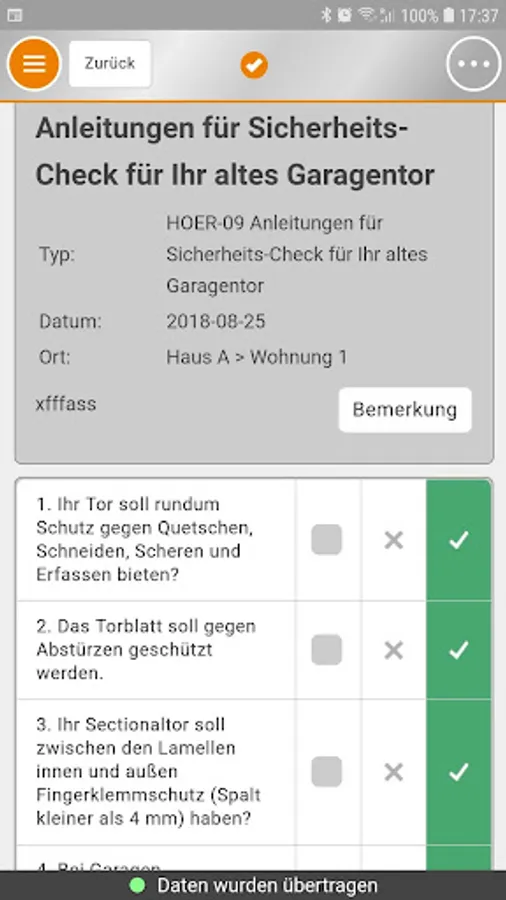 The manual creation and recording by hand directly on site, however, causes an unnecessarily high administrative effort. A check for completeness and data quality of the checklists is usually not carried out due to the high manual effort. The identified problems can only be tracked after manual transfer to the Construction Defects Service. This situation does not correspond to the current state of the art for digital processing.