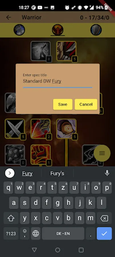 - Saving, loading and deleting as many builds as you want