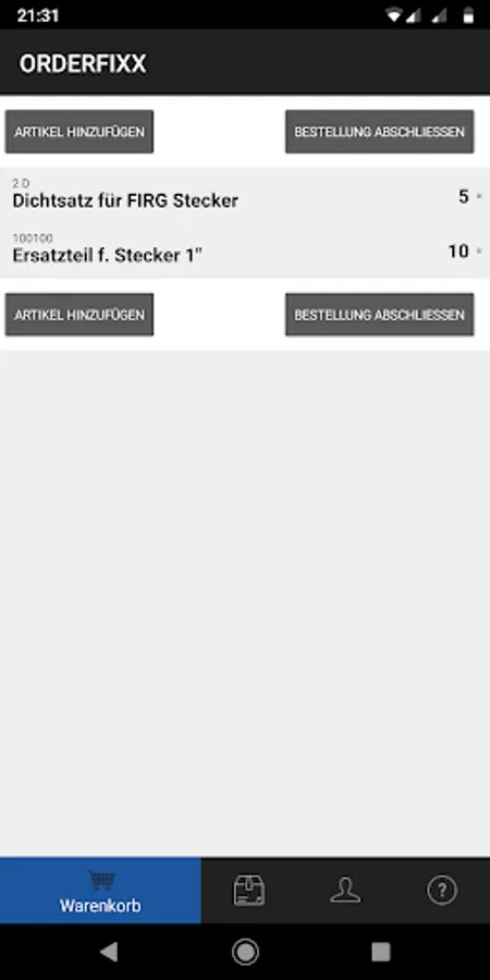 - Order from the Ernst Wagener Hydraulic Parts GmbH with customer account