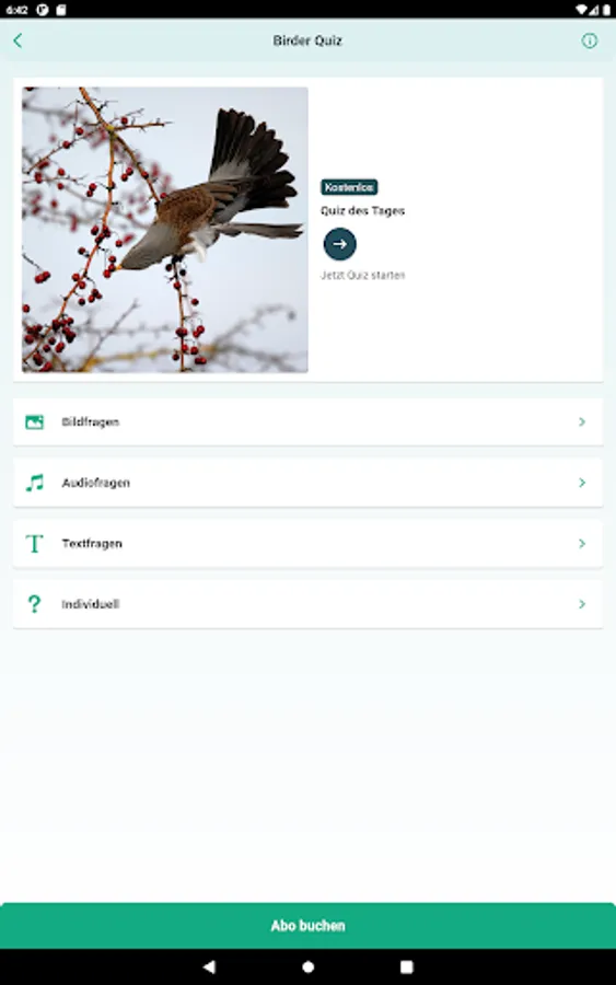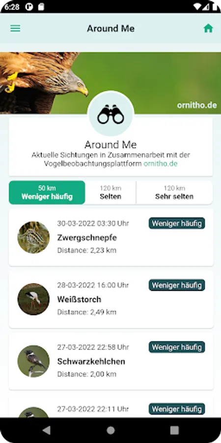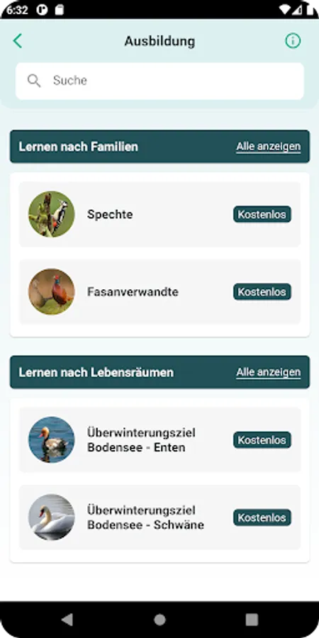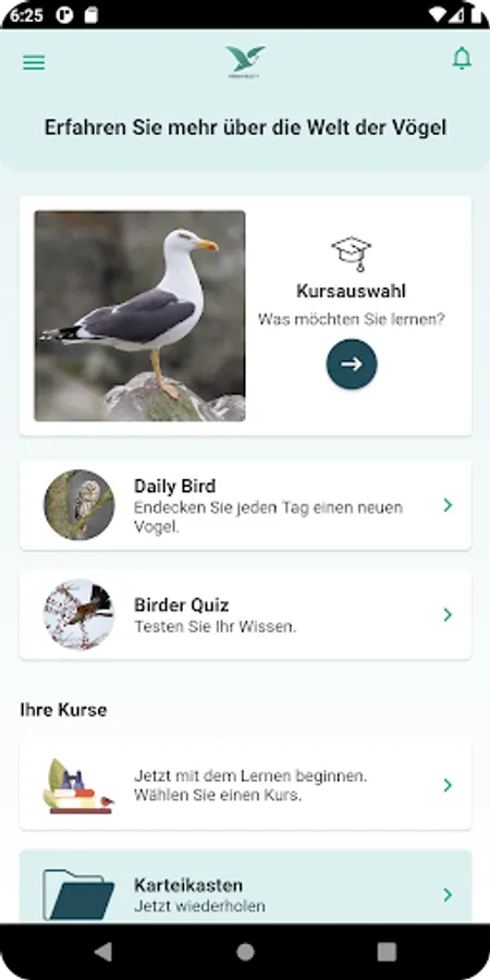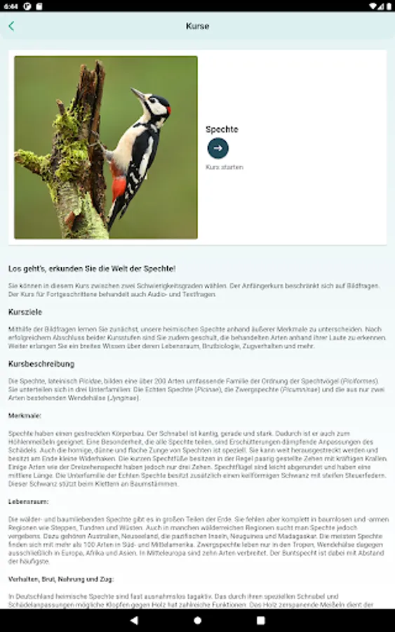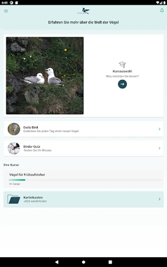 With this app we would like to offer you the opportunity to expand your knowledge according to your interests in ornithology.