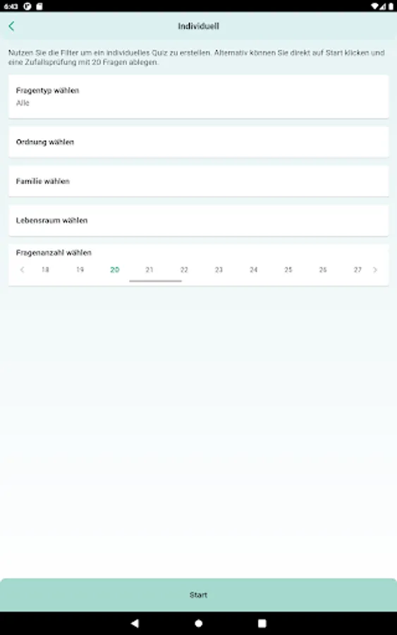 Exciting learning questions suitable for the selected species enable you to acquire knowledge quickly and effectively in two levels.