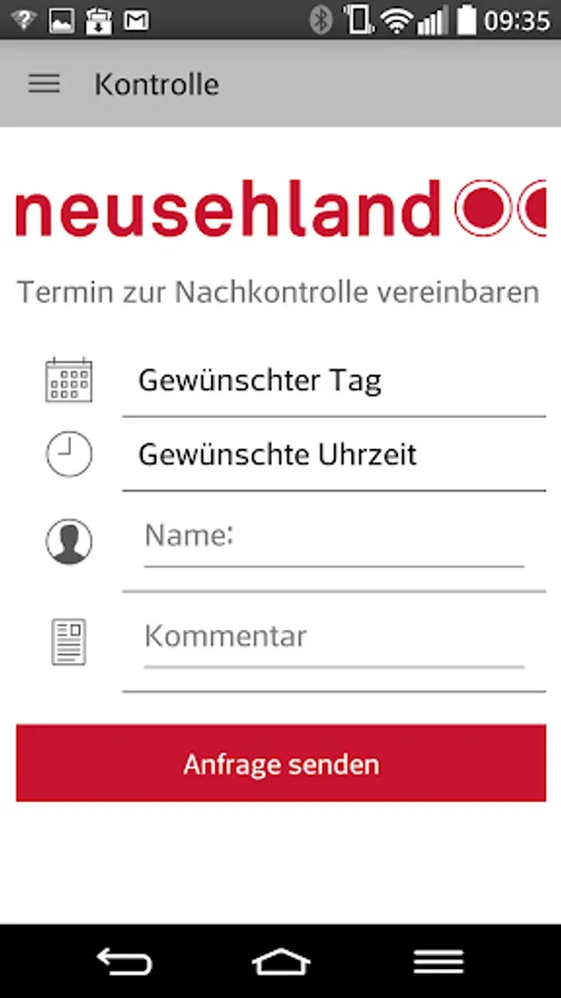 To send the inquiry to NeuSehLand, you will be asked the first time the Order page to your NeuSehLand branch. Once selected, you will find all important contact and even directions at any time in the NeuSehLand App.