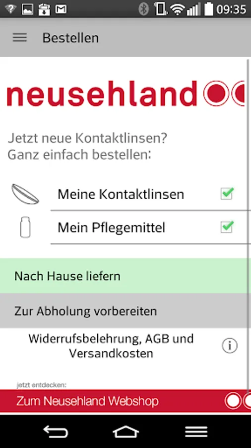 Get your contact lenses anytime new, whenever you need some. Your NeuSehLand app for contact lenses club you reminded of the change due.