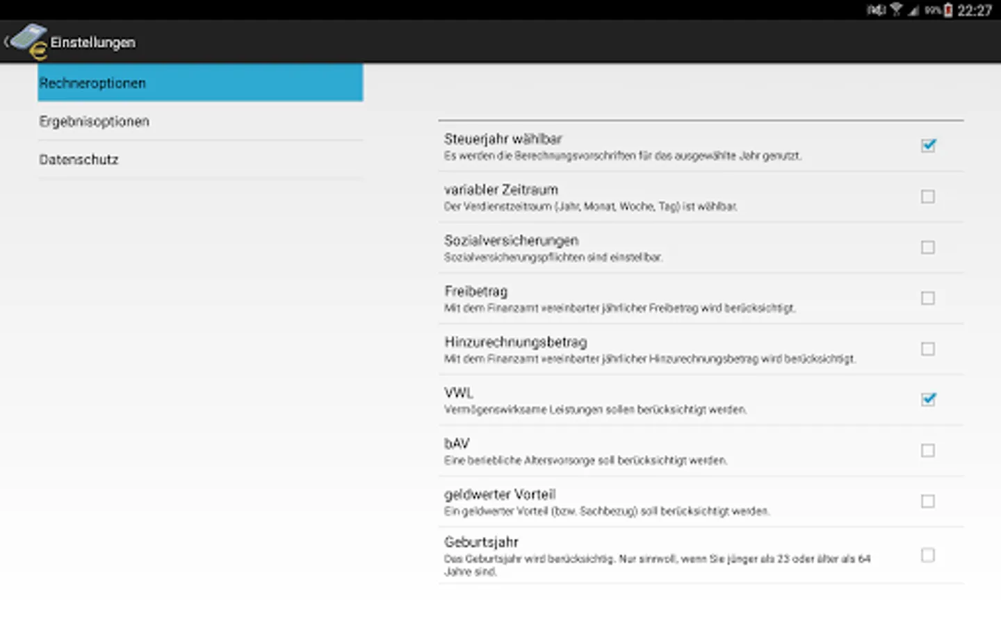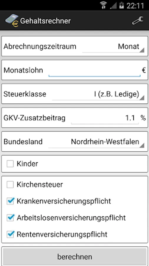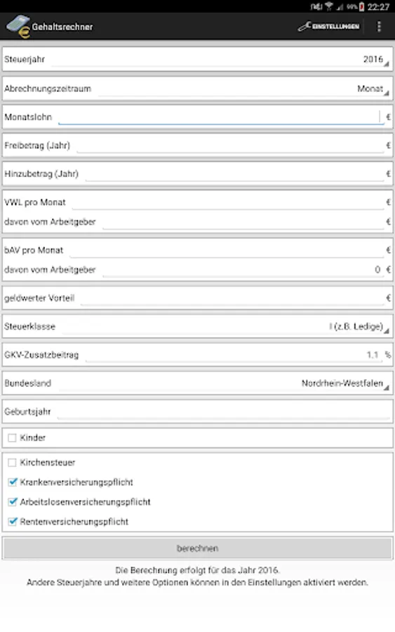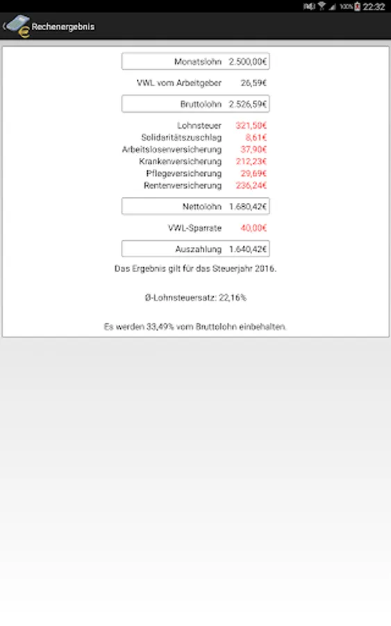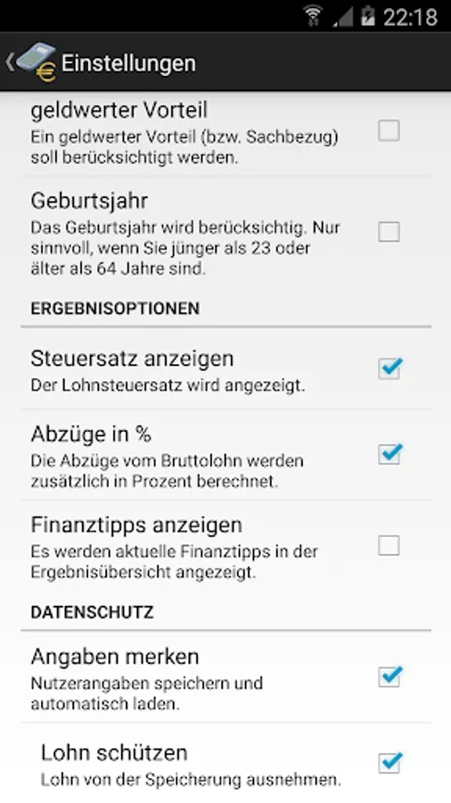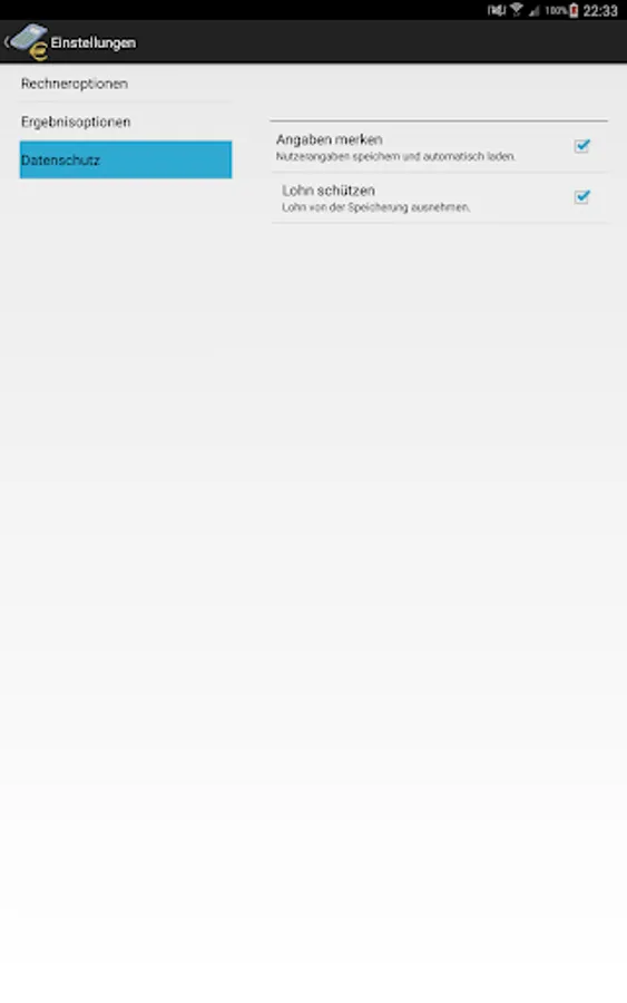 - save your details for a simple and quick calculation (including separate data protection for the entered wage)