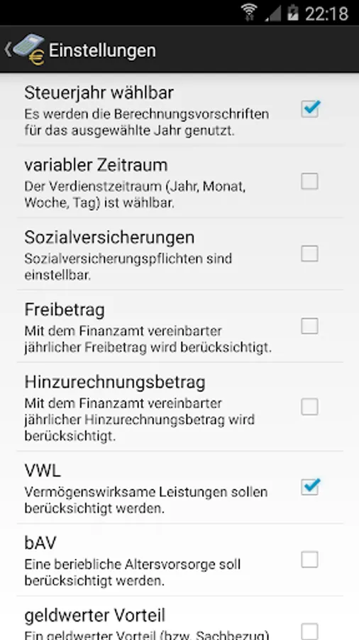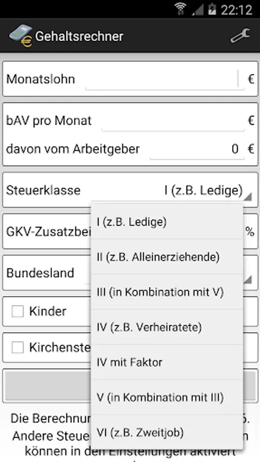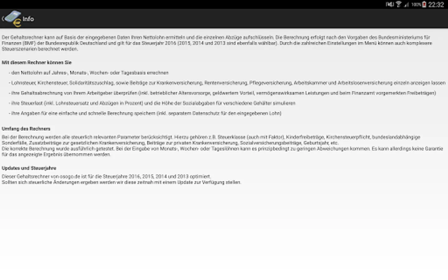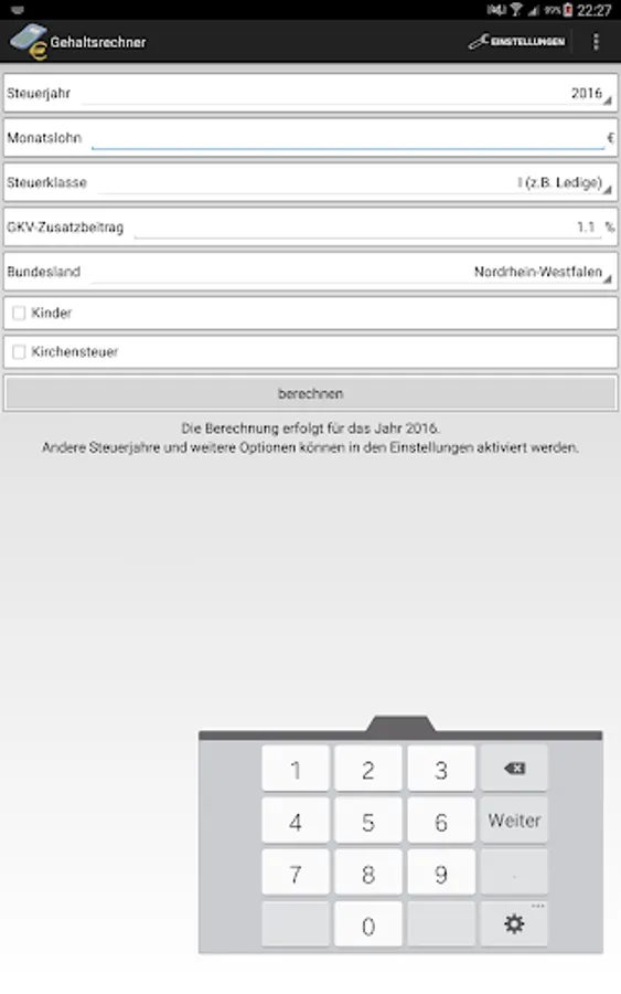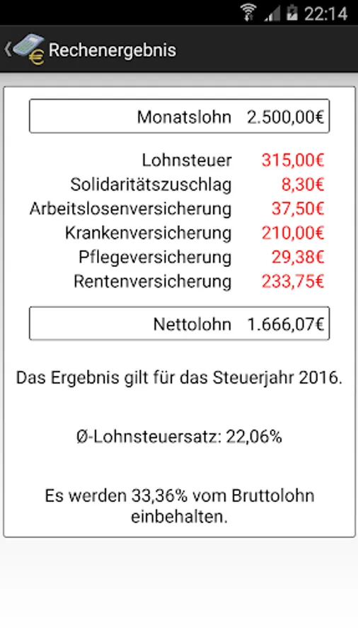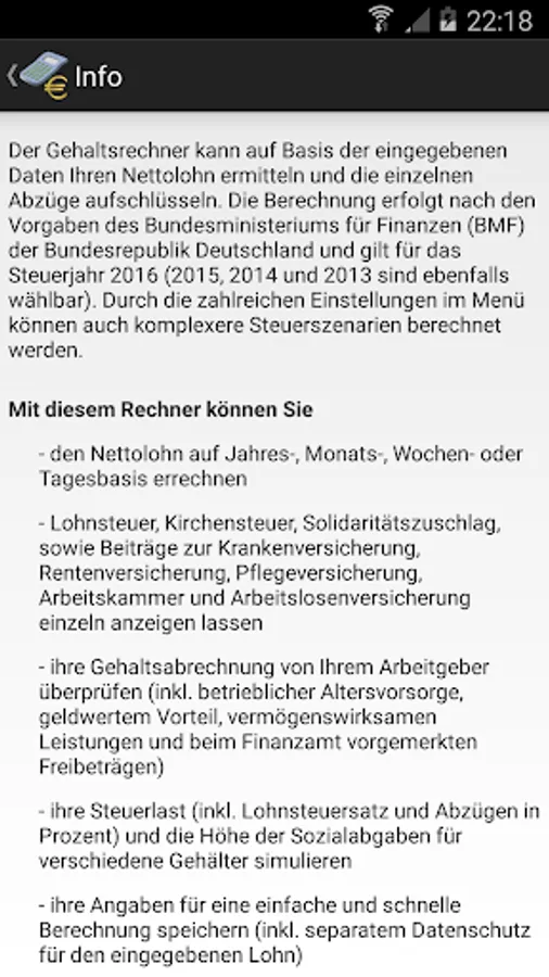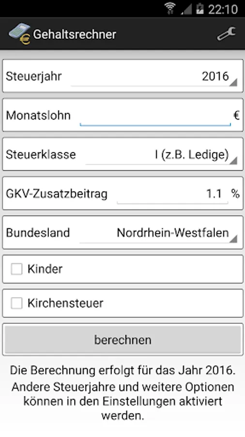 - save your details for a simple and quick calculation (including separate data protection for the entered wage)