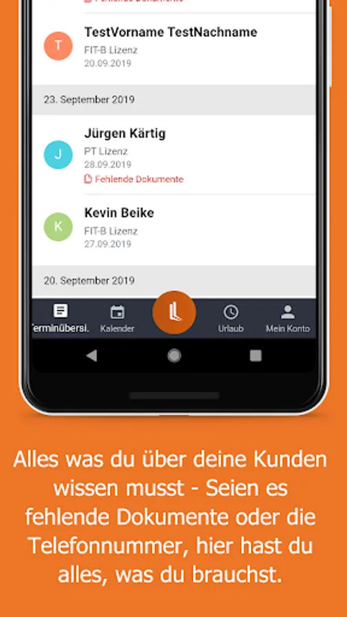 If a customer signs up for an exam, their name and phone number will be included in the app, so you can contact them immediately.