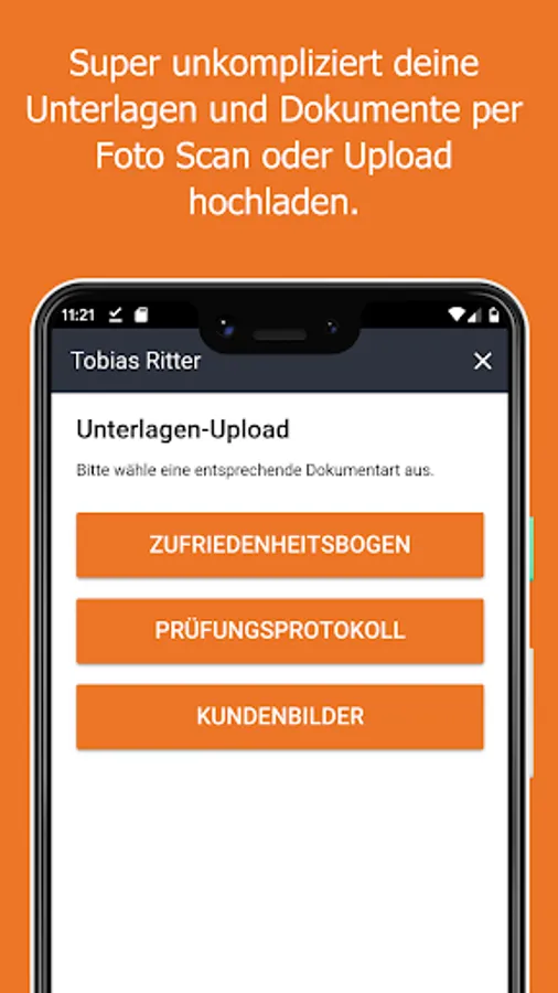 After the exam, you can finalize the customer in the app final. All you have to do is upload the documents (satisfaction sheet / examination report) via the upload function or the scan function. You can also upload customer images there quickly and easily.