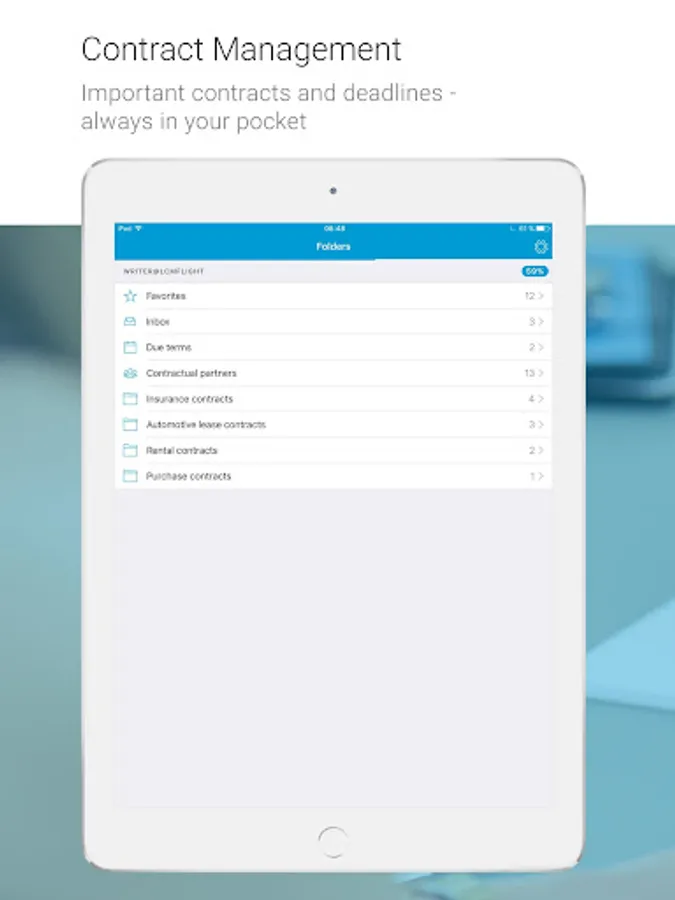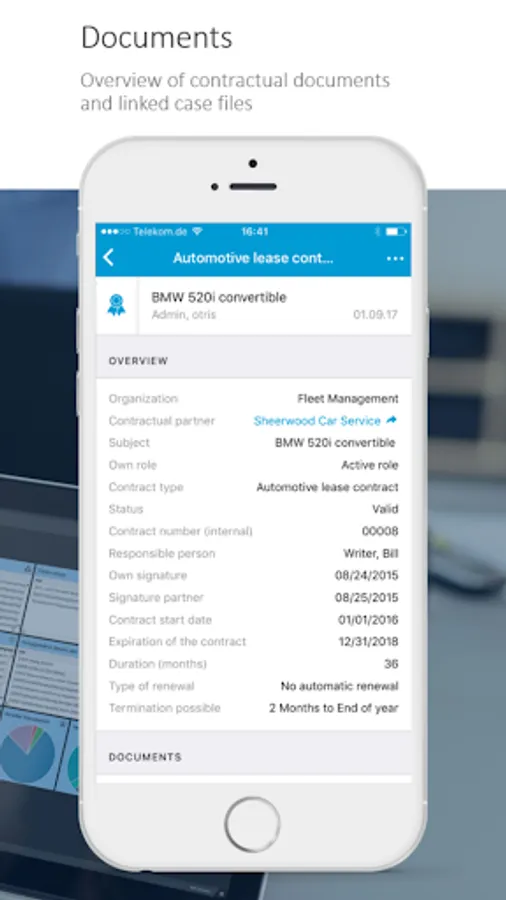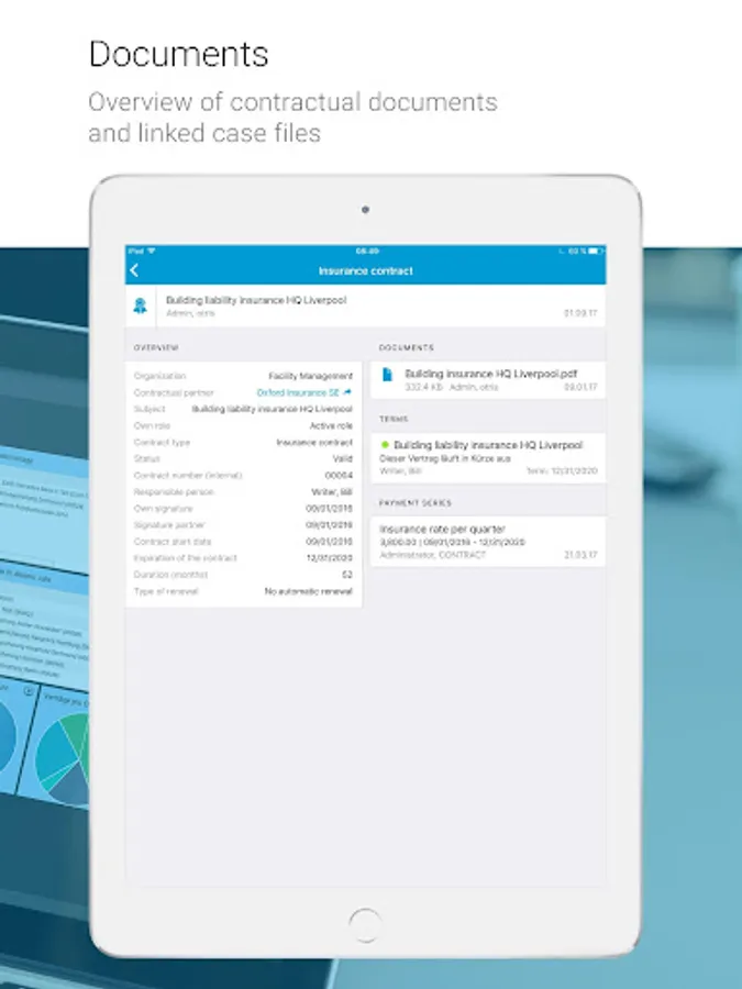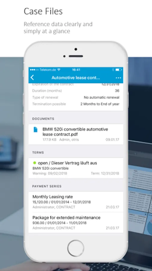 Transfer your contracts, contractual partners, terms and Documents from your otris contract management solution to a mobile device. The advantage: The selected contracts are available in any place, even when you are offline.