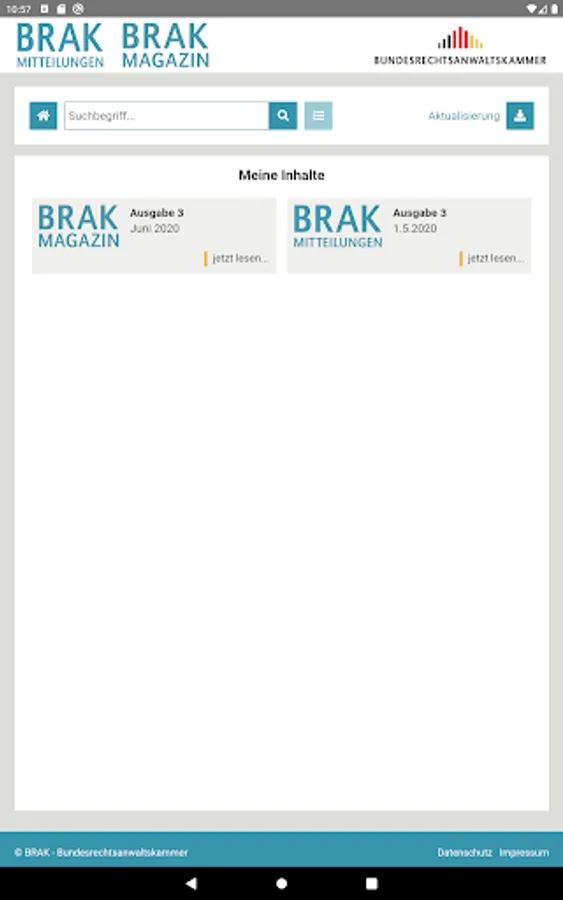 BRAK-Mitteilungen and BRAK-Magazin appear six times a year. All admitted lawyers and in-house lawyers refer to them.