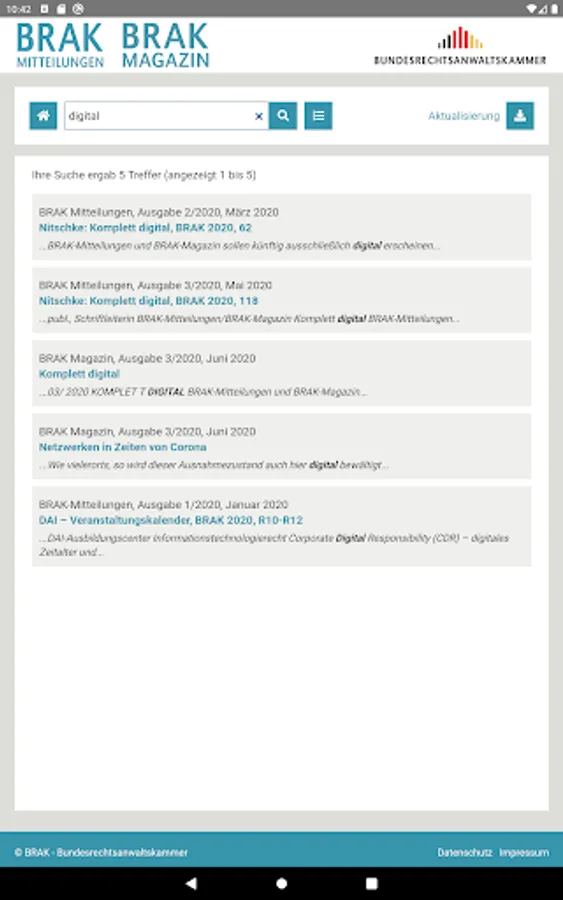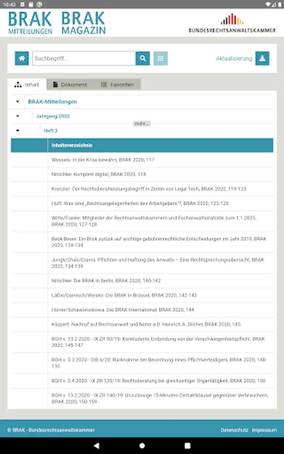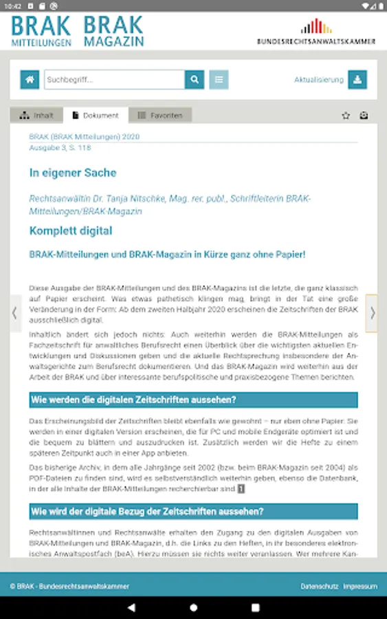 As before, there is also an archive with PDF editions of all issues as well as the BRAK communications database for research into essays and court decisions.