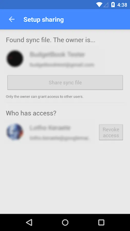 When you hit the synchronize button the first time, the app creates the file "BBSync.bin" in your Google Drive. The file will be used for further synchronizations. You can move the file to another folder on your Google Drive and share the file with your family members so they can edit it and use it for synchronization too.