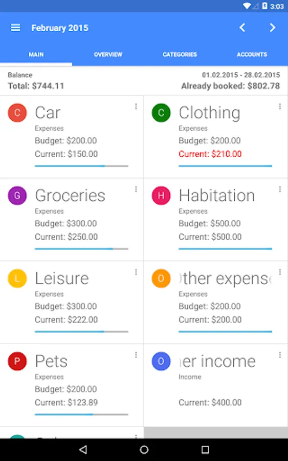 Description: Easy income and spending management for your family with "Our Budget Book": Keep an eye on your money in self-created categories. Create monthly bookings. Use the report page to see a graphical overview of your finances. Synchronize several installations of the app on different devices via Google Drive.