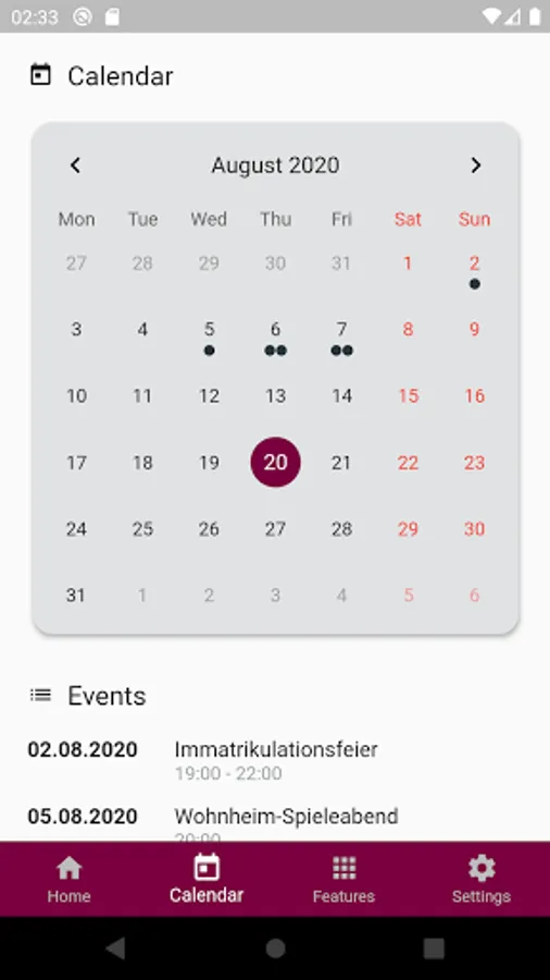 - Calendar