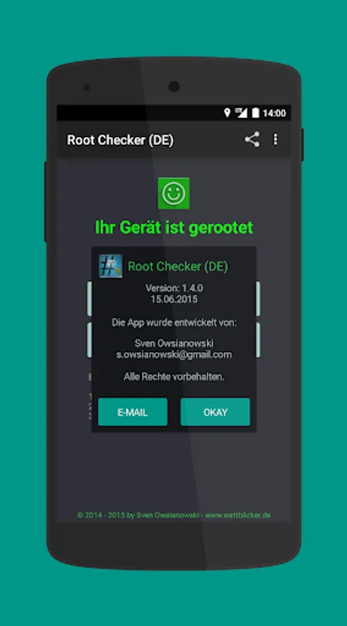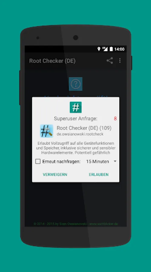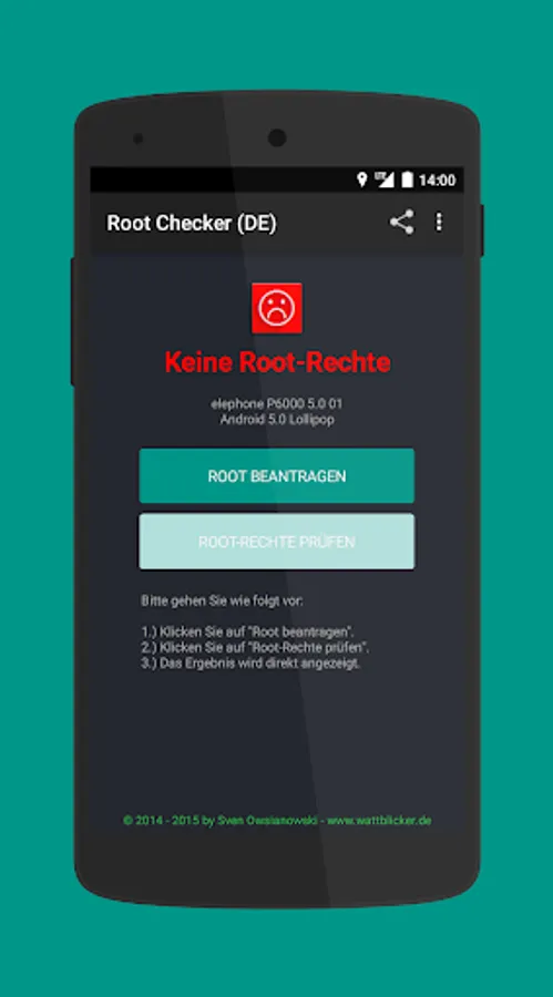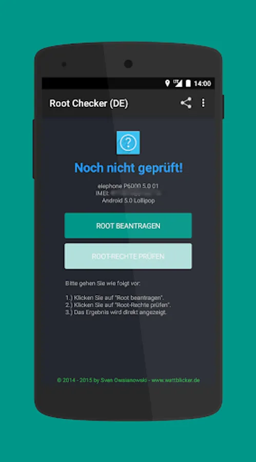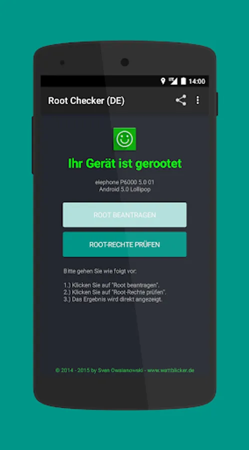 With this app you check in no time, your device has called. Root access features or not. This test is always useful when you have completed a Rootvorgang and want to be convinced of the success.