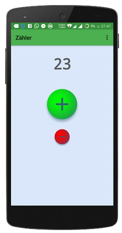 This app is a simple click counter. Use the + and - buttons to each one up or down a count. The value remains stored until you reset it (to the value must be tapped only long).