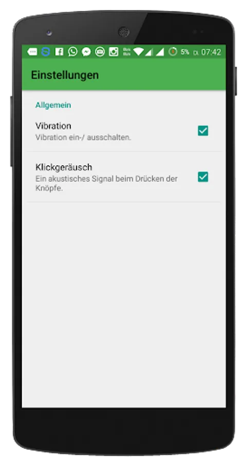 In the settings there is the possibility the vibration and the sound on or off with each click.