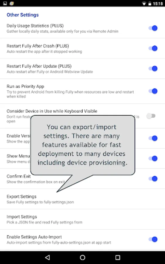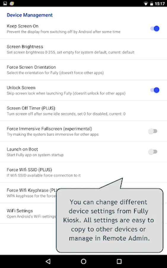 Read more about 200+ configuration options: https://play.fully-kiosk.com/#configuration