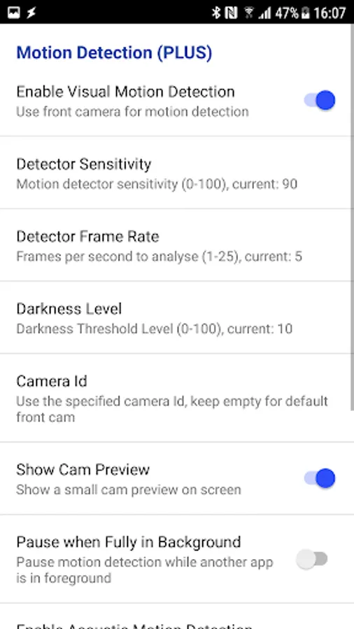 * Motion Detection using front cam or microphone gets more attention, show screensaver or turn screen off when no motion