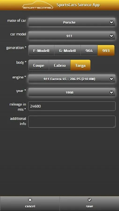 Digital service checkbook: Save all your cars service and repair works to have a well-kept history of your Porsche sportscar in case of sale.