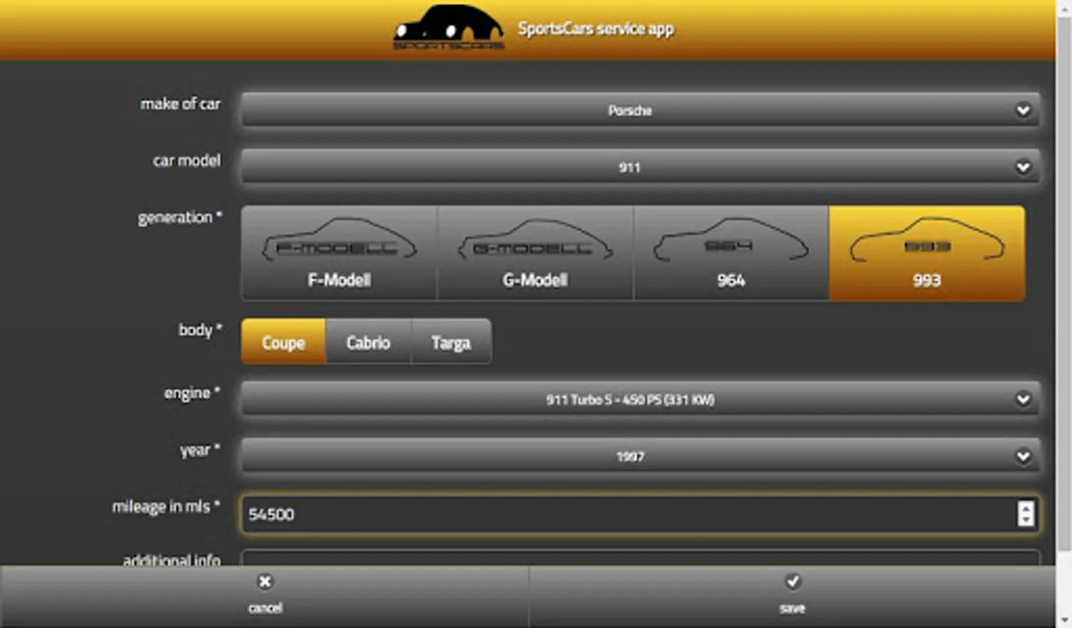 Easy sportcars administration: Administer all your classic Porsche sportscars in one app. Keep control about your costs.