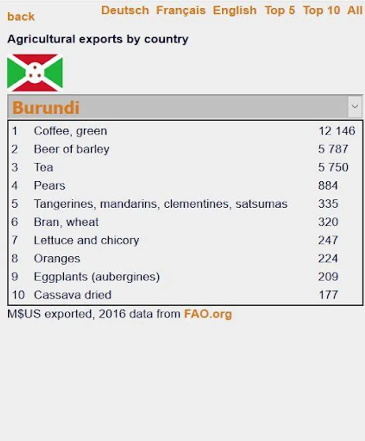Which country produces most wheat? Which imports most bread? Which are the main agricultural exports of Colombia? Find out about this and thousands of other questions in this simple app. For free, works completely offline, no ads, no BS :)