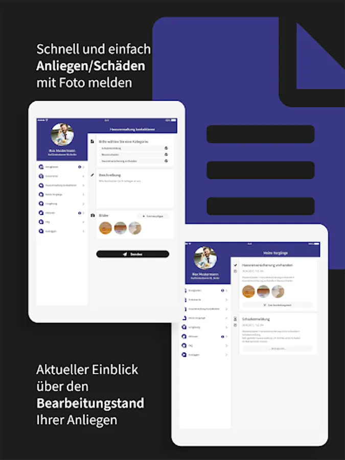 As a tenant or owner, you can report damage or concerns directly with photos via our app. Your inquiries are then available to our employees and can also be forwarded to craft businesses.
