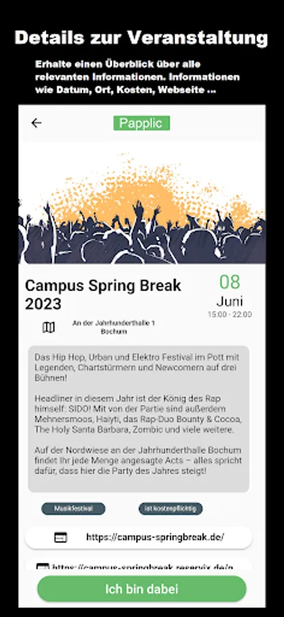 Download the Papplic app now for free and create your personal event calendar or organize the next event experience with your friends.