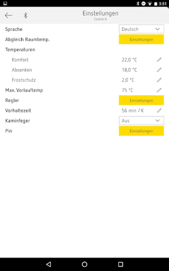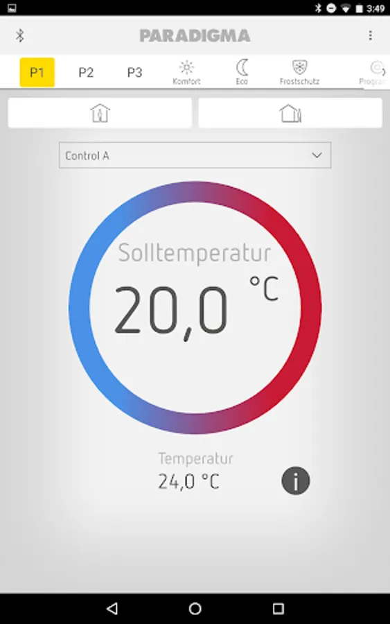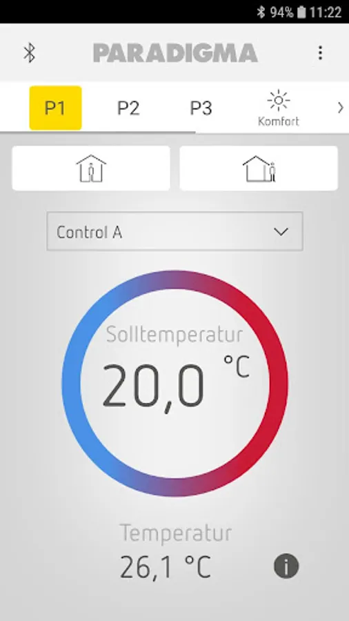 The Paradigma heating controller Control A regulates paradigm gas condensing units with drinking water storage or combined gas condensing appliances. Control A is controlled exclusively via our App Control A via smartphone or tablet. In the house you are securely connected with Bluetooth LE. Of course, the App Control A can be operated intuitively.