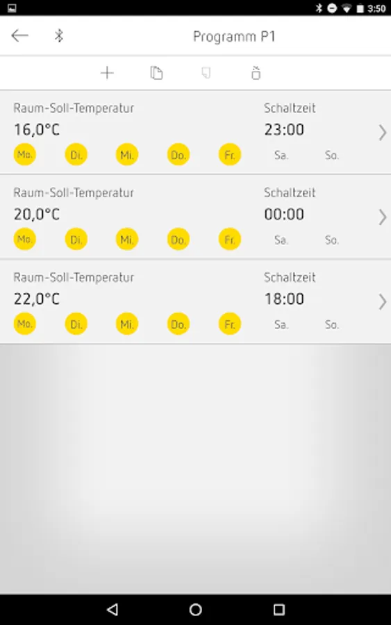 When starting the app, the main level appears. Here you can make the most important settings for your heating system.