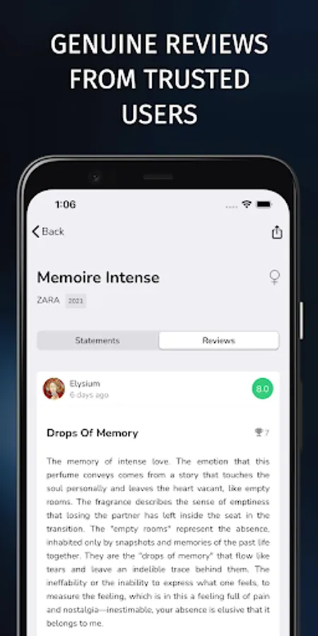If you have a free Parfumo Account, you can log in and easily rate perfumes, manage your collection and more.
