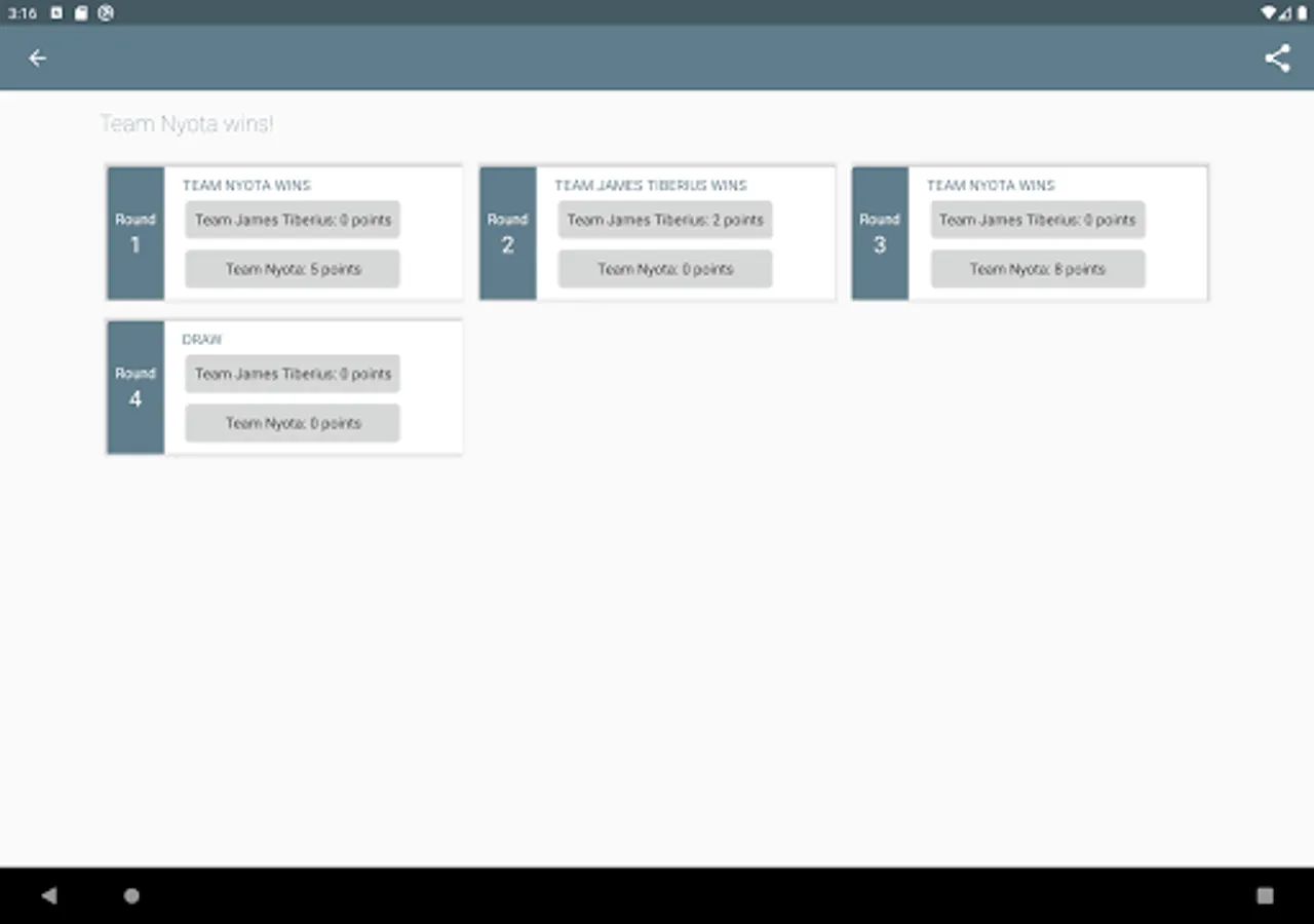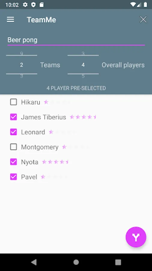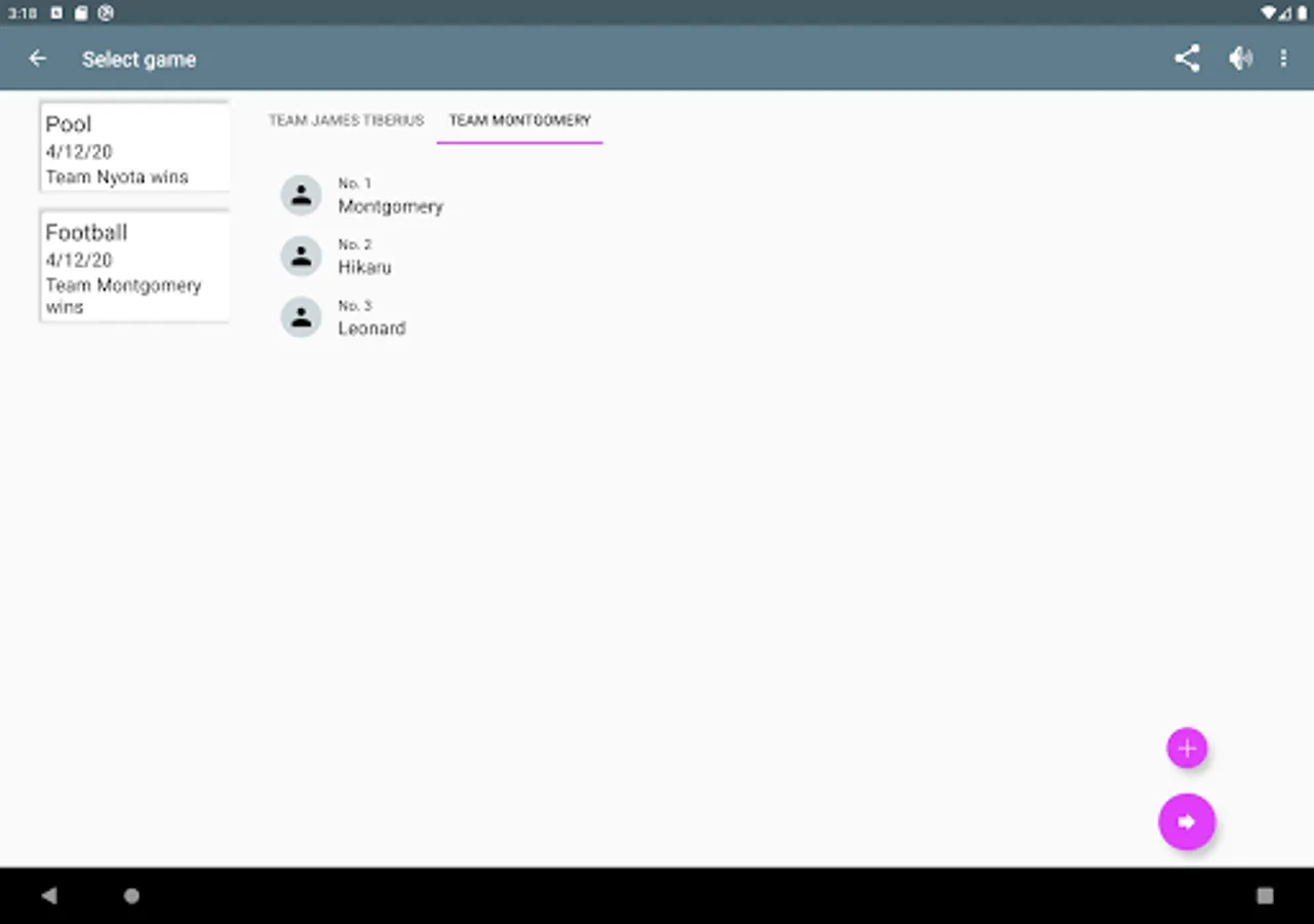 TeamMe is different to other team building / random generator applications, because your friends don't have to wait until you put their names together. Instead you're able to pass your smartphone around until your teams are completed. Additionally player can be selected in advance. Also you're able to record scores and share the results with your friends, later on.