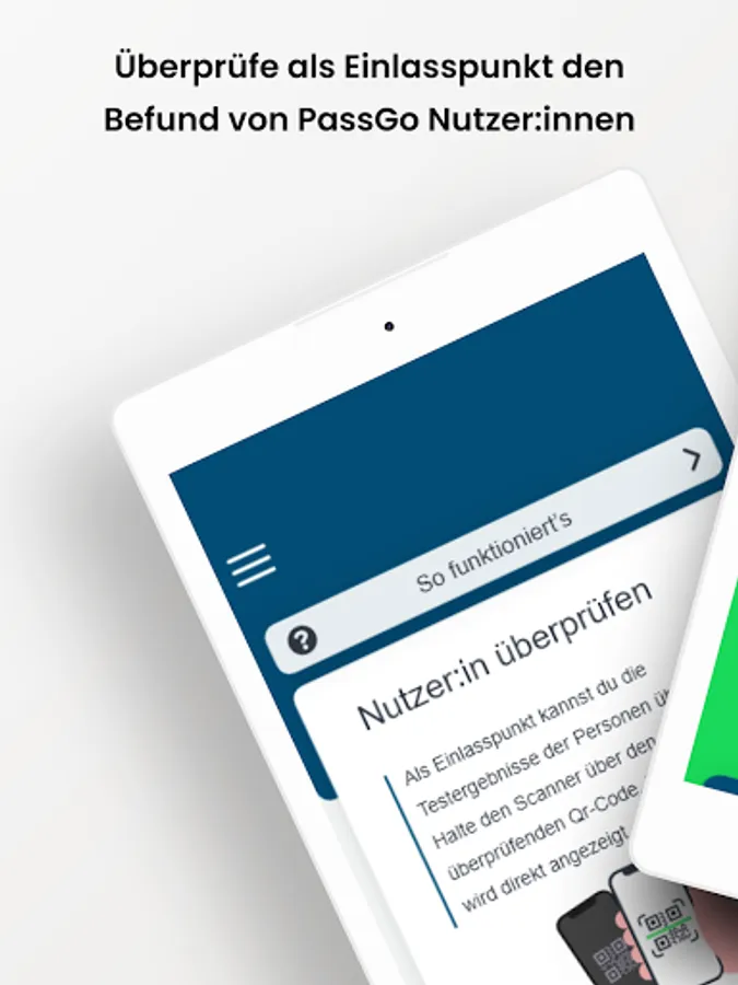 With the help of the QR codes of the PassGo app, you can register people as an entry point, for example as a restaurant, cinema or theater, and grant access if the result is negative. Based on the data of all recorded persons, we can also specifically trace back contacts based on signatures in the event of infection.