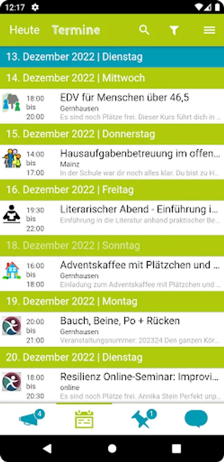 She helps to organize joint projects and events, to announce them to a small or large group under "Notices" and to enter them in the calendar. The offers in the app are a treasure trove of very different educational offers, events and projects that invite you to participate and work on one or more occasions.