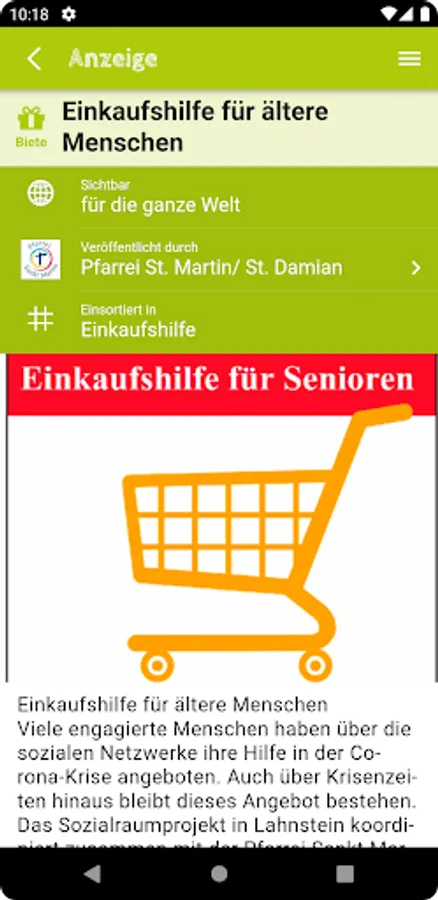 This app would like to make a contribution on the way to the "Caring Community" and thus to mutual support of people.