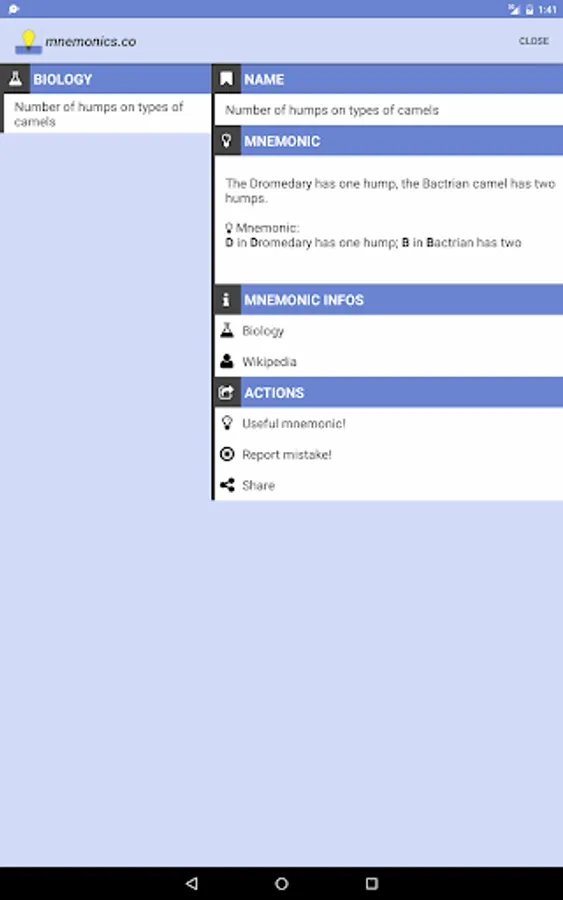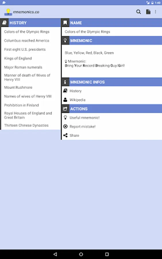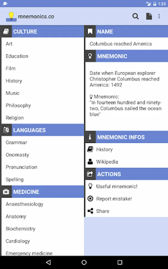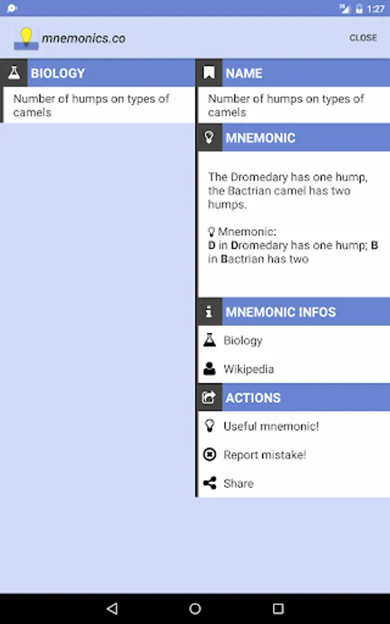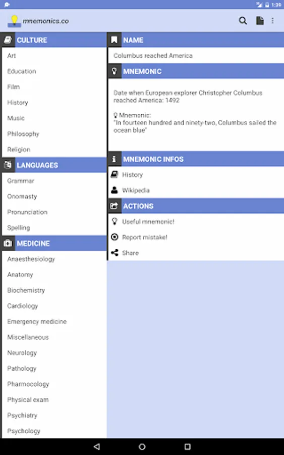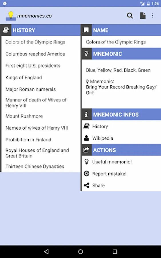 The app gives you access to all mnemonics on mnemonics.co using your smartphone or tablet.