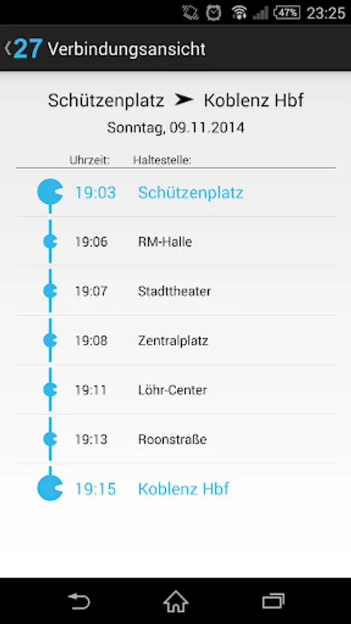 Meanwhile, the data has been entered, so that the DB Navigator can be used. A big advantage of Twenty Seven continues. It only refers to the line 27, thereby creating a tool for fast offline search for the next bus.