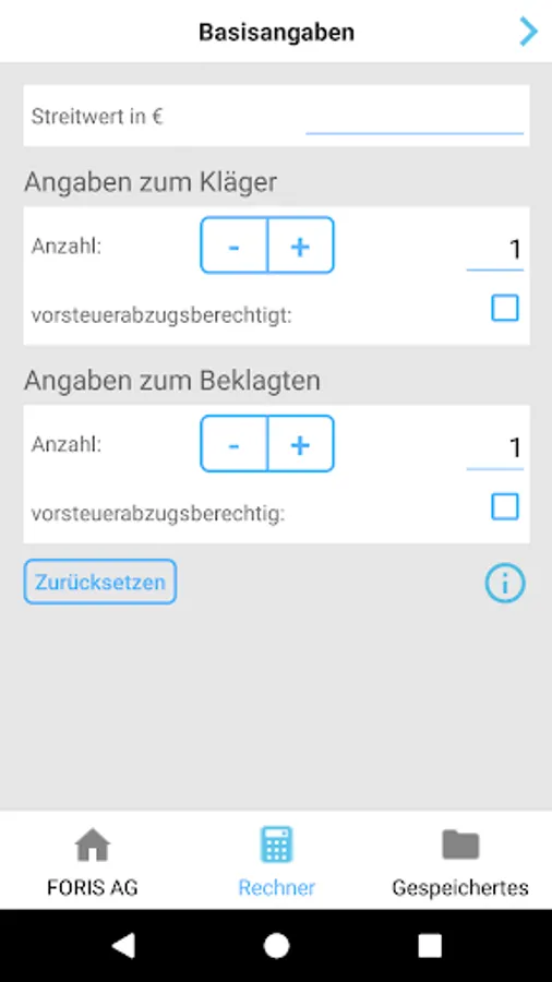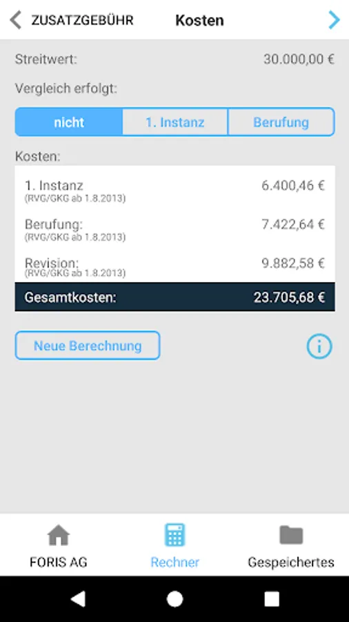 The app is a process calculator for comparing costs and attorneys that provide information about attorneys' fees (RVG) and need legal costs - and their clients in a settlement conference would provide a rapid information on the most frequently asked questions: