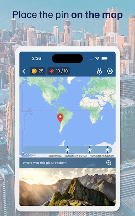With these engaging image-based challenges, you can put your geographic knowledge to the test. Geography Quiz challenges you to locate specific locations on a map for fascinating photographs from around the globe. Swipe, zoom, and pan to examine the details and form reliable conclusions. The game's user-friendly UI and simple controls make getting started a pleasure.