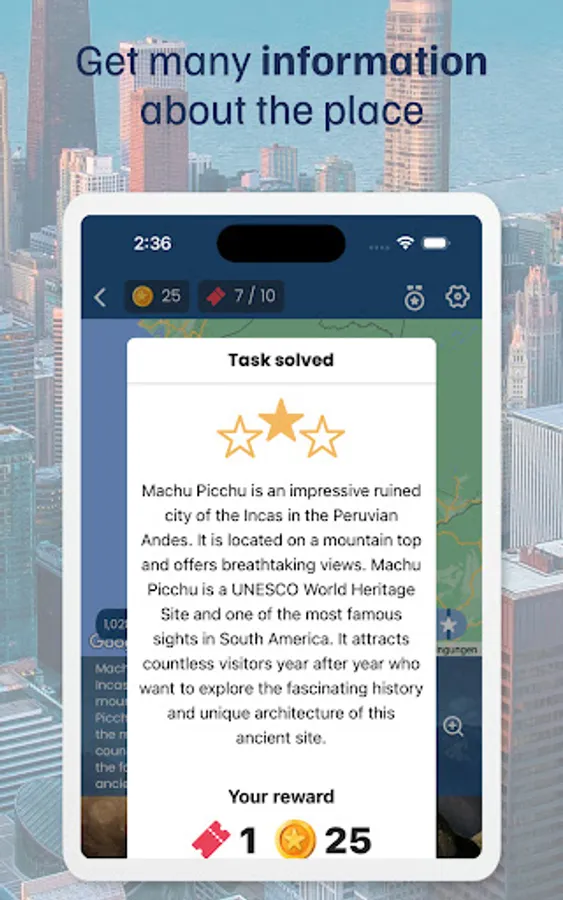 Geography Quiz is more than just a game; it's also educational. As you play, broaden your understanding of geography, landmarks, and nations. Every riddle offers the chance to discover intriguing information about various places, their cultures, and their historical significance. Geography Quiz makes learning a thrilling experience that keeps you interested and driven to keep learning new things.