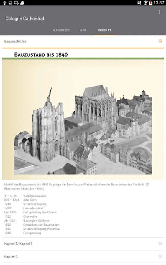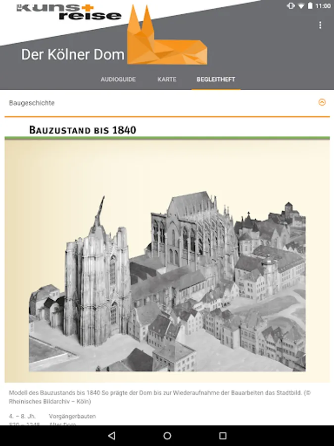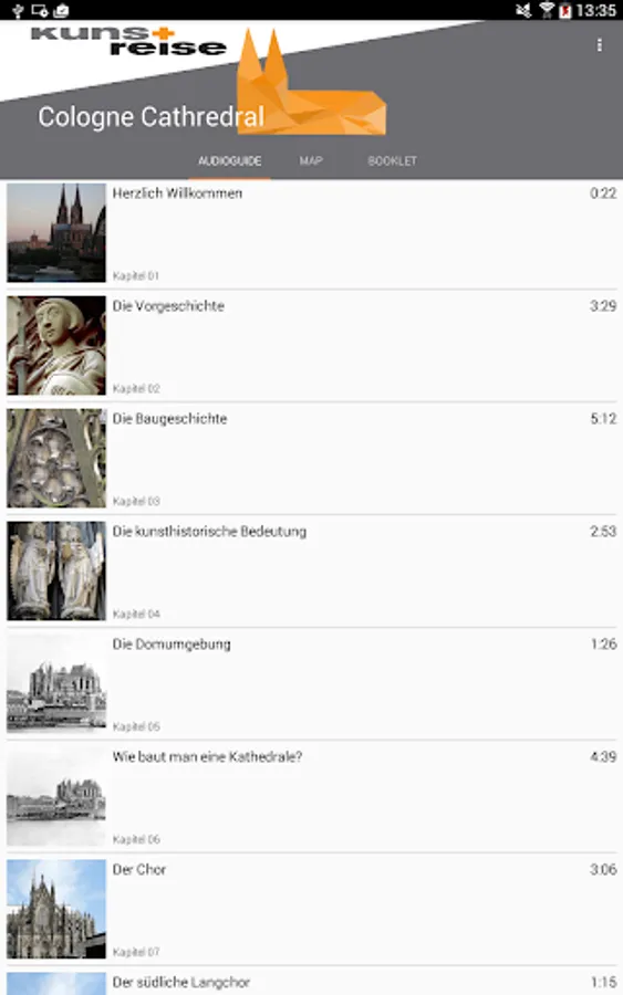Let yourself be guided through the history of the Cologne Cathedral and discover its unique architecture and art. This art-historical audio guide will lead you in 72 minutes in an individual guide for listening through the cathedral of Cologne.