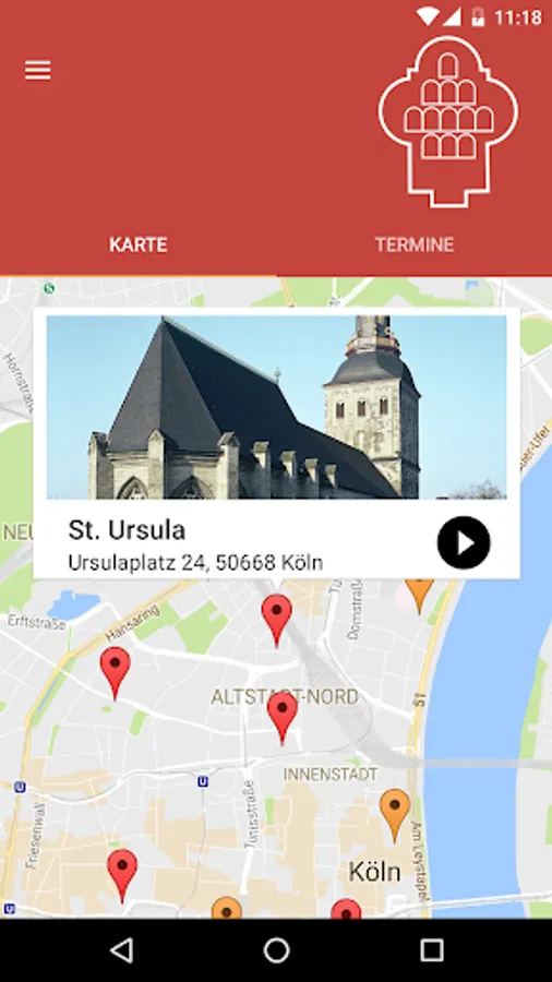 Use the map function to find your way around Cologne and get an overview of the locations of the churches.