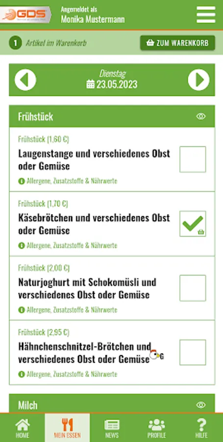 Nutritional information included. In addition, short-term cancellations and changes can be made and invoices can be called up.