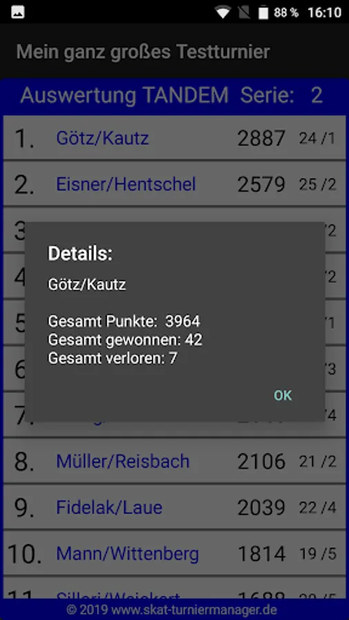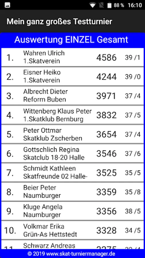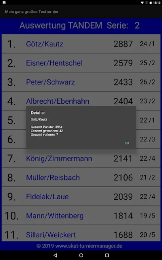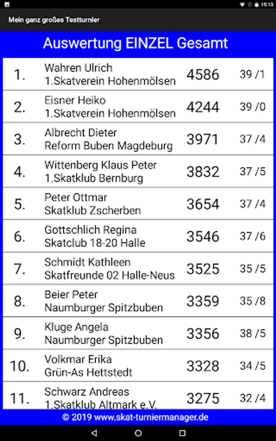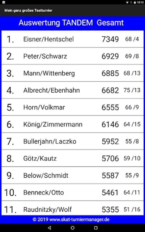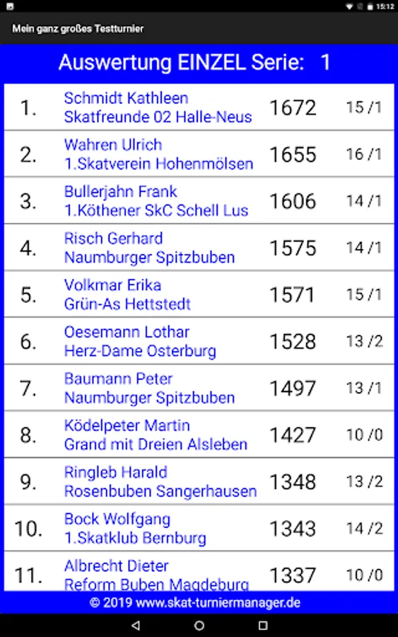 Allows you to easily make draws and evaluations for skat tournaments, championships, etc. run with the Windows program "Skat Tournament Manager" (www.skat-turniermanager.de) accessible to all participants. You can specify in the Windows program for each tournament exactly what should be published. The free app shows after entering your individual 6-digit tournament code draws and evaluations for single, tandem, mixed and team stunts.