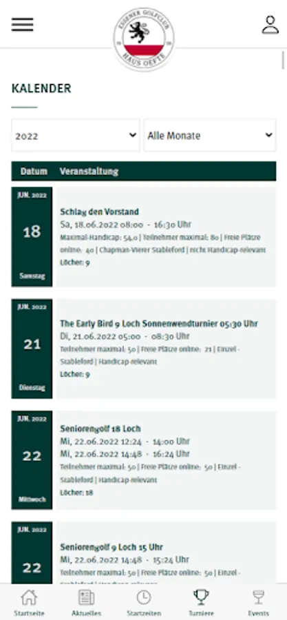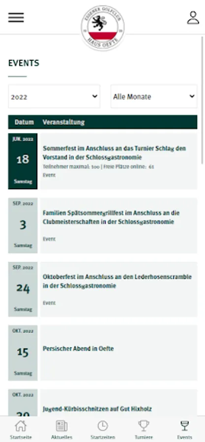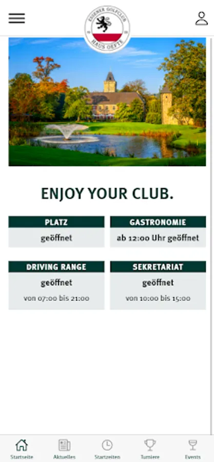 The app of the Essen Golf Club Haus Oefte. The 18-hole course is an oasis in the middle of the Ruhr area. A few minutes away from the city of Essen, in the charming surroundings of the historic district of Kettwig, you will find the idyllically situated golf course. The extensive park around the Schloss Haus Oefte, which today serves as a clubhouse, looks back on a long history.